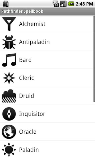 1º- Pathfinder Spellbook: Donde podremos ver una lista de todos los conjuros de Pathfinder por clase, marcar nuestros favoritos y tener acceso en cualquier momento (si, incluso durante las partidas sin necesidad de acaparar el manual)